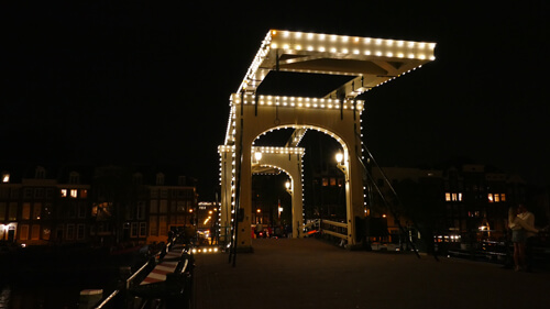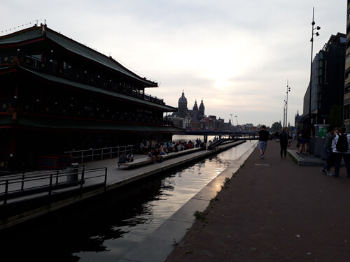 Nach dem vielen Laufen (und ca. 3 Std. später), mussten wir uns erstmal in Cafes/Kneipen und bei einem sehr leckeren Inder entspannen und stärken, bevor wir dann nochmal an den Grachten entlang zur angeblich schönsten Brücke Amsterdams (Magere Brug) gelaufen sind. Durch den Red Light District zurück in die Innenstadt, haben wir den Abend schlussendlich bei lecker Kirschbier in einer der vielen kleinen Kneipen nahe der Oude Kerk ausklingen lassen.