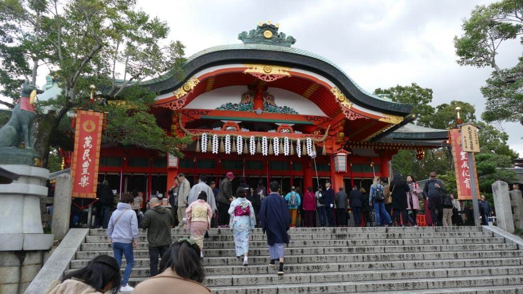 Hier hat es uns wieder besser gefallen. Sowohl der Shinto Schrein selbst, den man über eine nicht zu unterschätzende Zahl von Stufen erreicht, als auch die gesamte Anlage (kostenlos) sind definitiv einen Besuch wert. Leider wurde es als wir dort waren schon wieder langsam dunkel (und kalt), so dass wir nicht allzuviel Zeit dort verbracht haben.