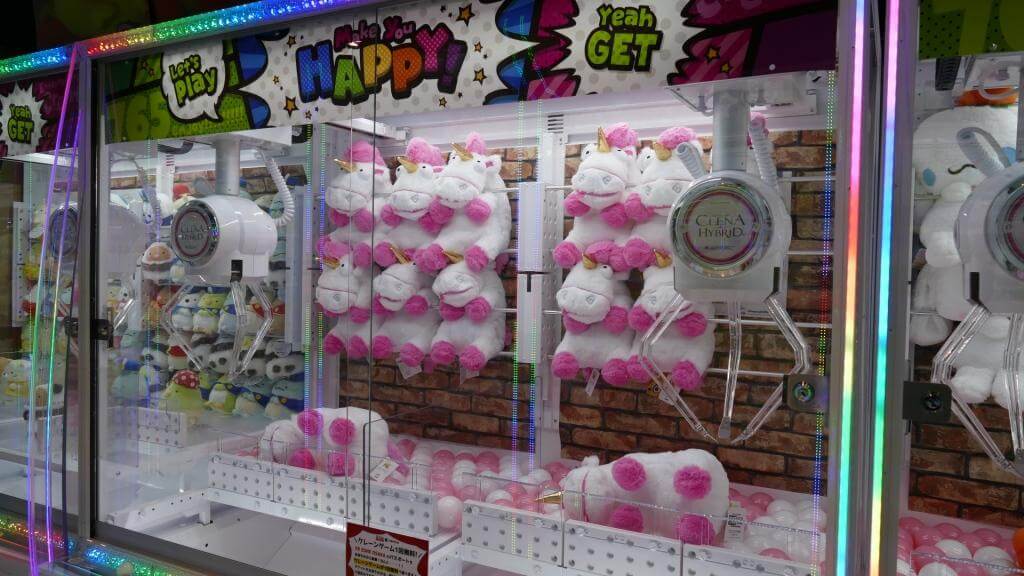 Angezogen hatte uns hier vor allem das Riesenrad und der Vergnügungspark (beides am Vortag geschlossen). Aufgrund der in den meisten Kabinen doch recht beschlagenen Scheiben, haben wir uns dann aber gegen eine Fahrt mit dem Riesenrad entschieden und uns stattdessen ein wenig mit dem Entertainment-Bereich vertraut gemacht. Japaner verbringen scheinbar gerne Zeit mit Spielautomaten aller Art (im HEP FIVE v.a. Greifarm-Spiele). Bei Preisen von unter 1 Euro pro Spiel konnten aber selbst wir es uns nicht verkneifen das ein oder andere Nicht-Greifarm-Spiel auszuprobieren.