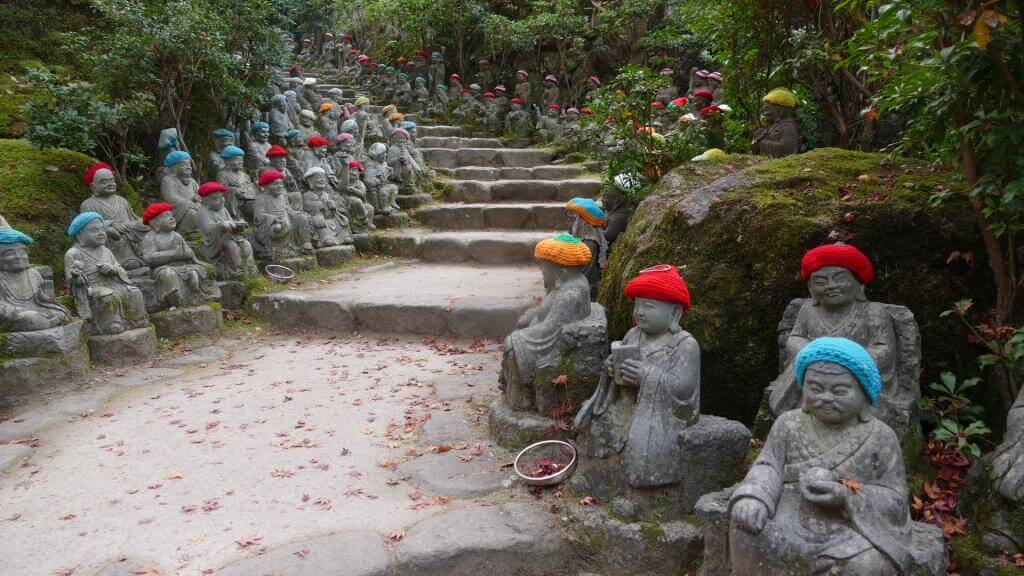 Neben dem quasi auf Stelzen im Wasser stehenden Schrein gibt es auf der Insel noch vieles mehr zu sehen, so dass man ohne Probleme einen ganzen Tag dort verbringen kann. Besonders gut gefallen haben mir der buddhistische Tempel Daisho-in, (der Weg dorthin ist rechts und links gesäumt von hunderten kleinen Buddhafiguren) und die 5-stöckige Pagode Gojunoto. Da wir die Gondelfahrt auf den Gipfel des Mount Misen aus Zeitgründen leider nicht geschafft haben, kann ich hierzu nichts sagen. Die Bilder im Internet sehen aber vielversprechend aus.