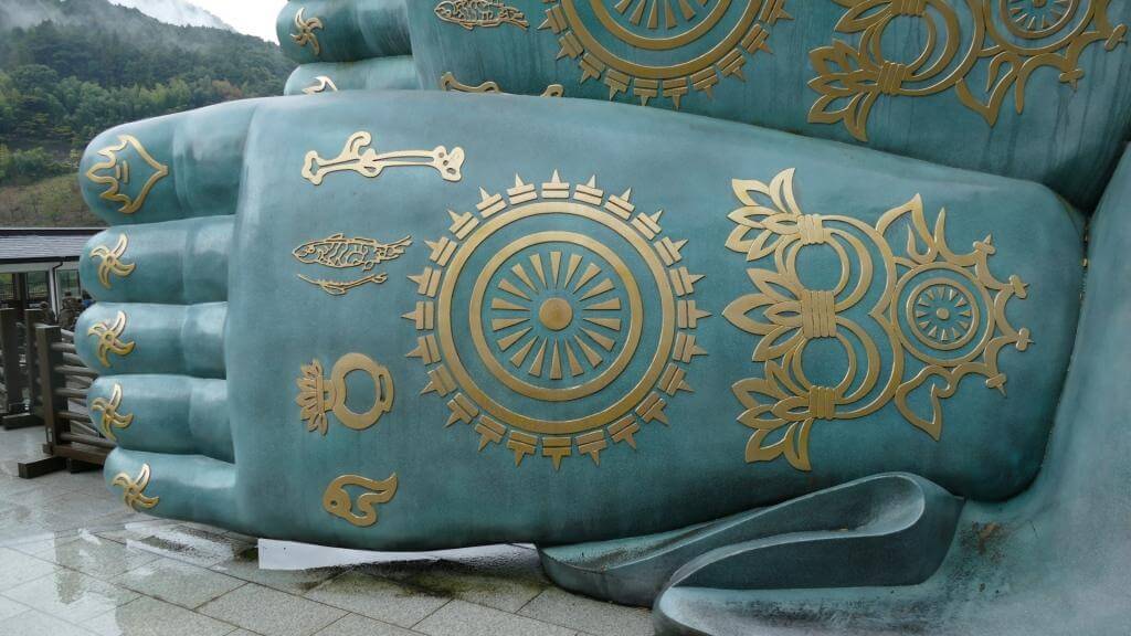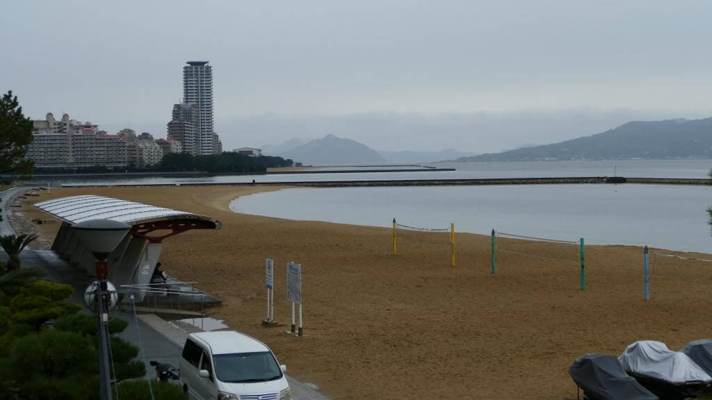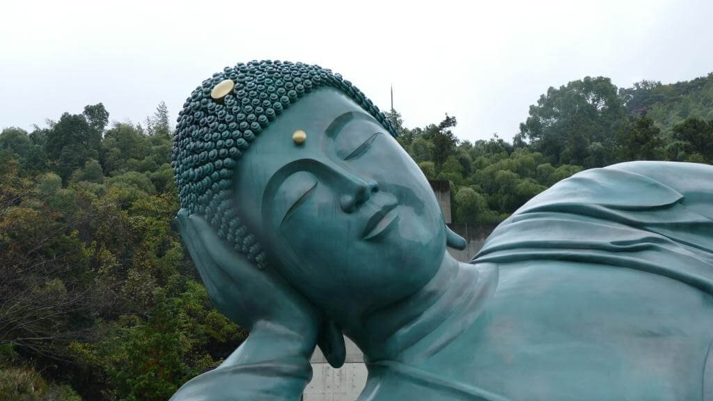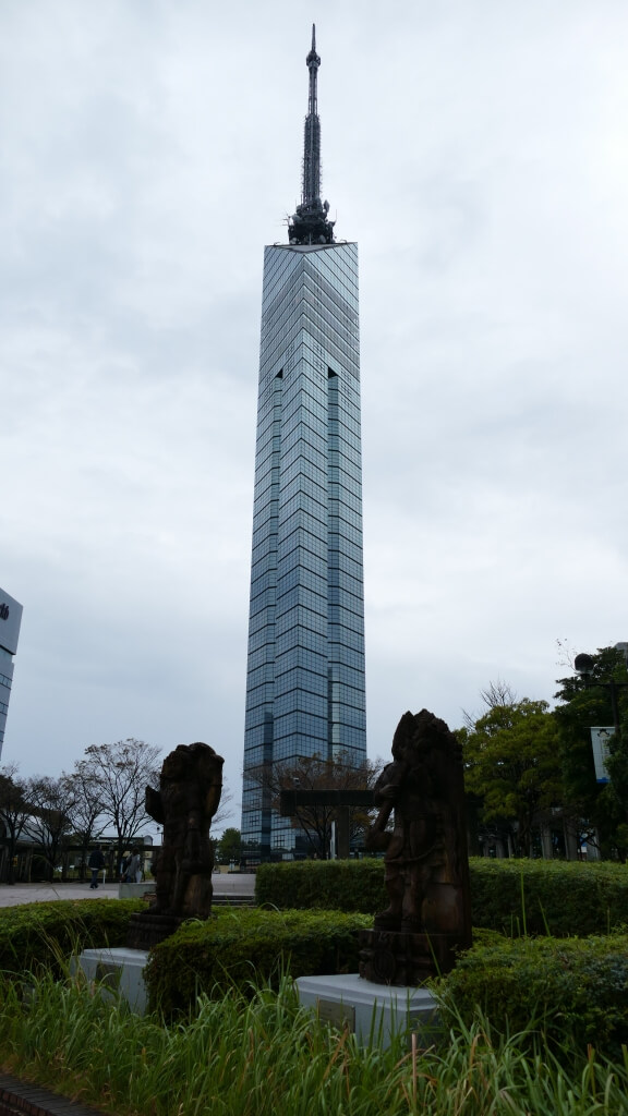 Dieser aus dem Stadtbild Fukuoka’s ins Auge stechende und architektonisch ungewöhnliche Turm war von unserem Hotel aus etwas weiter weg. Wir tingelten also erstmal 30 Minuten mit dem Bus durch Fukuoka. Angekommen am Turm haben wir uns gegen die Auffahrt auf den Turm entschieden (machte bei dem Wetter keinen Sinn) und einfach nur ein paar Schnappschüsse gemacht. Der Momochi Strand, der bei schönem Wetter sicher zum Verweilen einlädt, lag quasi nebenan. Ergo sind wir anschließend dorthin geschlappt, haben es uns auf einer der überdachten Bänke an der Promenade gemütlich gemacht, gefrühstückt (“Reisklumpen mit Füllung” von 7-Eleven) und beratschlagt, was wir vor der Weiterfahrt noch tun könnten. Entschieden haben wir uns für eine Fahrt zum “liegenden Buddha” …