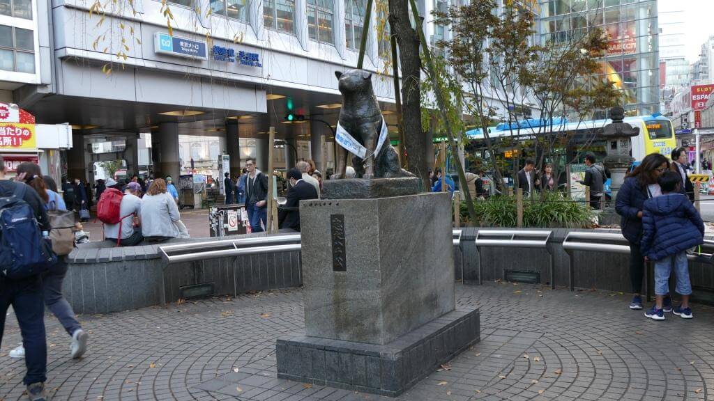 Nahe der Kreuzung befindet sich auch die Hachiko Statue, die an einen Hund erinnert, der am Bahnhof von Shibuya 10 Jahre lang treu auf die Rückkehr seines Herrchens von der Arbeit gewartet hatte. Was der Hund nicht wusste: Sein Herrchen war eines Tages bei der Arbeit an einer Hirnblutung verstorben. Diese herzzerreißende Geschichte wurde natürlich verfilmt (Achtung: Taschentücher bereit halten!). Ach ja, für ein Foto mit der Statue muss man sich (großer Andrang!) ebenfalls in einer Schlange anstellen.