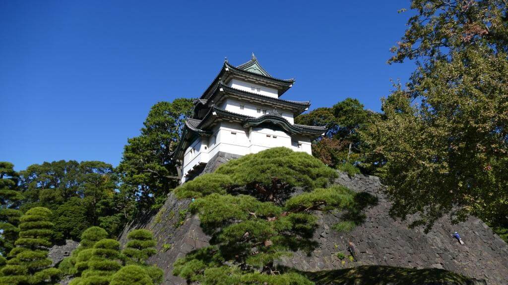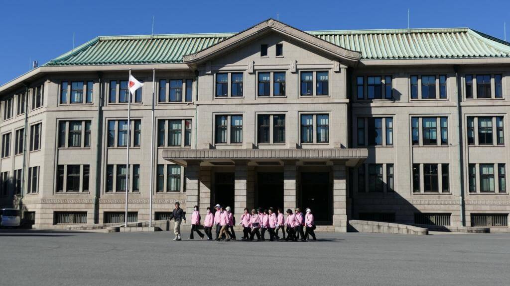 … der Sitz des japanischen Kaisers (Tenno). Der Großteil der Anlage ist für die Öffentlichkeit nicht zugänglich. Es gibt aber Touren, in denen man einen kleinen Einblick bekommen kann. Die Tour beginnt um 10 Uhr. Um sicher dabei zu sein, sollte man um 9 Uhr vor Ort sein und sich eine der Wartemarken abholen. Ab 9:30 Uhr beginnt dann die Registrierung (Reisepass mitbringen!) und pünktlich um 10 Uhr die ca. 30-minütige (kostenlose) Tour. Die Tour ist wohl kein Muss, aber die Anlage ist schön und die Erläuterungen (auf Englisch) durchaus interessant. Das Drumherum, das die Verantwortlichen “veranstalten”, scheint einem ein wenig übertrieben, ist aber sehr japanisch und irgendwie auch verständlich – schließlich wohnt dort die hochverehrte kaiserliche Familie.