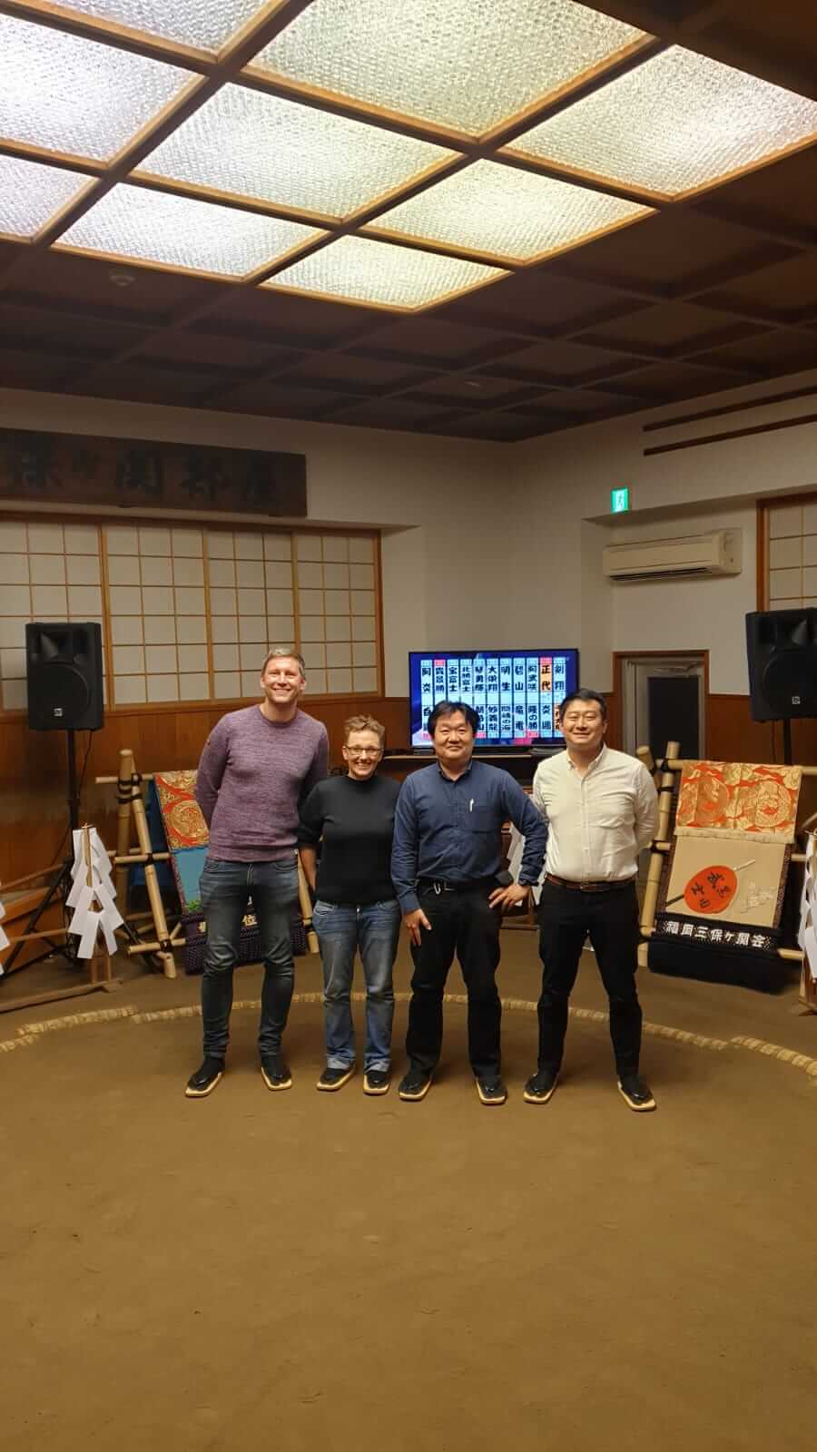 Mein Highlight des Tages war das Abendessen: Wir trafen Shigenori & Masahiro (Geschäftspartner meines Arbeitgebers) und gingen ins Masuiyama. Hierbei handelt es sich um ein von einer (Ex-)Sumoringer-Familie geführtes Restaurant (inkl. Sumo-Show-Ring), das typischen Sumoringer-Eintopf serviert. Aufgrund eines großen Sumo-Turniers in Fukuoka, wurde zwar kein Show-Kampf geboten, aber Essen und Getränke waren ein absoluter Genuss! Erst gab es diverse Vorspeisen (z.B. Sashimi, Edamame, frittierte Sardellen, japanischen Kartoffelchips & Chicken Wings) und dann den Eintopf (inkl. Fishcakes, Pilzen, Kohl & Karotten, etc.), der auf einer Art Induktionsplatte direkt an unserem Tisch zubereitet wurde. Was die Getränke anbelangt, haben wir ebenfalls nichts ausgelassen: Erst Bier, dann kalten und warmen Sake, Pflaumenwein pur bzw. mit Soda und japanischen Whisky mit Soda. Bin nicht sicher, ob man mit Englisch in diesem Restaurant durchkommt, aber wir hatten hier wirklich einen genialen Abend!