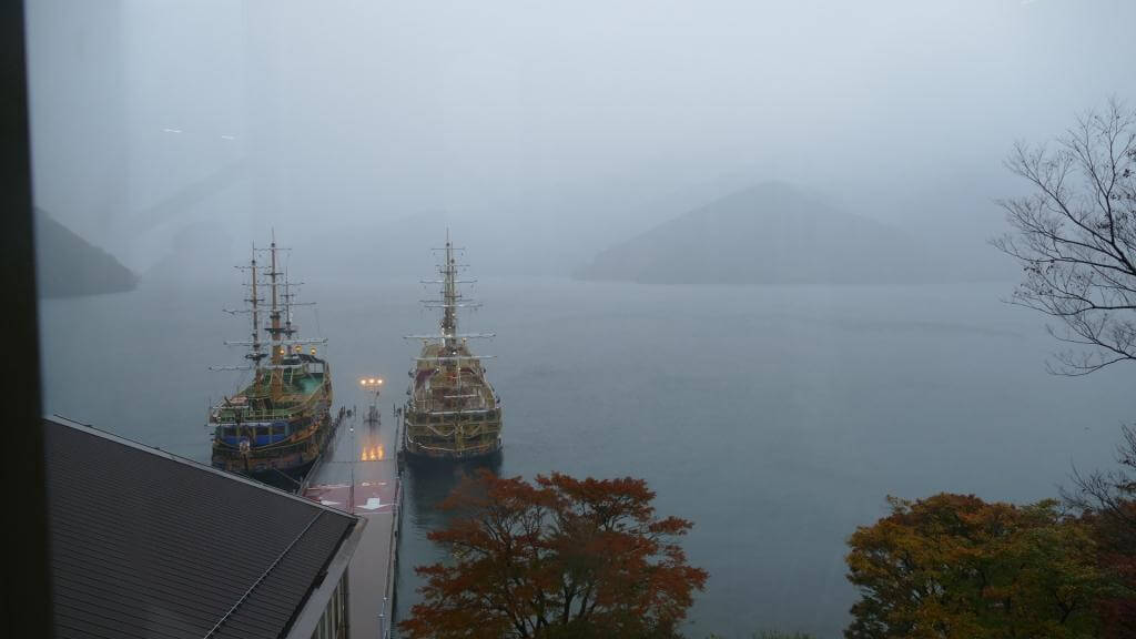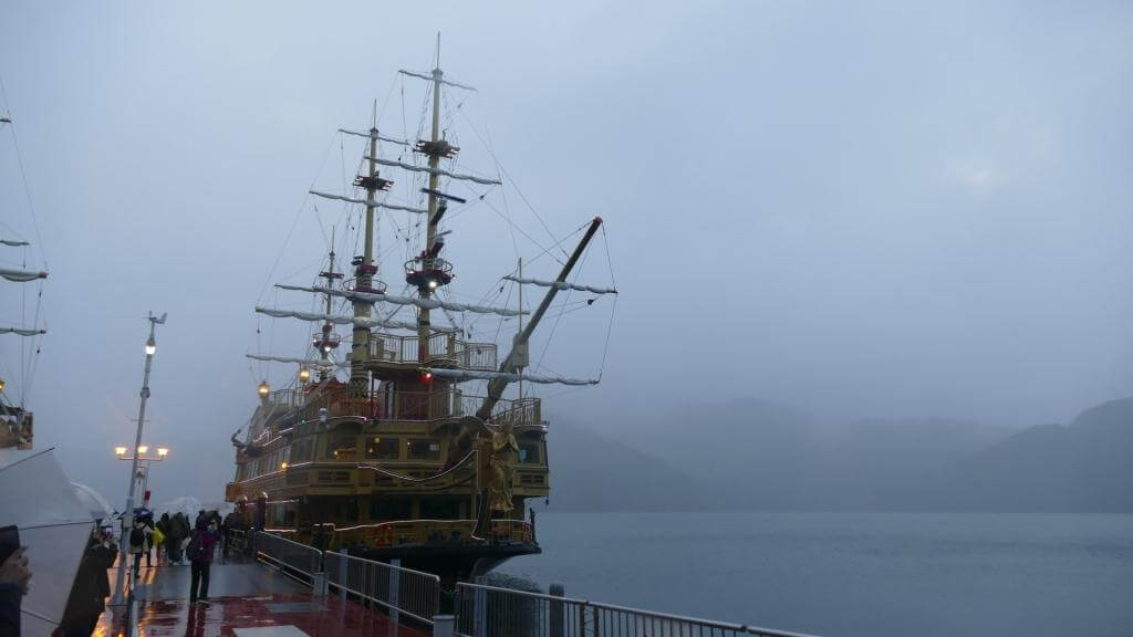 Für unseren letzten Tag in Japan hatten wir eine gemütliche Bustour zum Berg Fuji und ins angeblich wunderschöne Hakone gebucht. Als wir buchten, war der Wetterbericht noch recht vielversprechend, aber am Tag des Ausflugs hat es leider wieder nonstop geregnet. Unser Tag begann um 7:30 Uhr (Treffpunkt am Bus). Nachdem wir dann an weiteren Stopps noch weitere Passagiere eingesammelt hatten, starteten wir Richtung Berg Fuji. Dank viel Verkehr, Baustellen und Regen dauerte die Fahrt gut 3 Stunden und es ging vor Ort erstmal zum Mittagessen. Hier konnte man sich am Buffet Fleisch und anderes holen und ersteres dann am Tisch auf einem Minigrill selbst zubereiten. War witzig, aber ehrlich gesagt nicht außergewöhnlich gut. Nächster Stopp war die 5th Station am Fuße des Fuji, von wo aus man in den Sommermonaten den Berg erklimmen kann. Hier standen wir also eigentlich direkt vor dem Berg, konnten dank des Wetters aber rein gar nichts sehen. Zurück im Bus ging es weiter zur Hakone Seilbahn und mit der dann den Berg hinab zum Ashi See. Diesen haben wir dann mit einem Piratenschiff” überquert und schwups saßen wir auch schon wieder im Bus. Um etwas schneller zurück in Tokyo zu sein, sind wir in Odawara in den Zug eingestiegen. Ende der Tour.