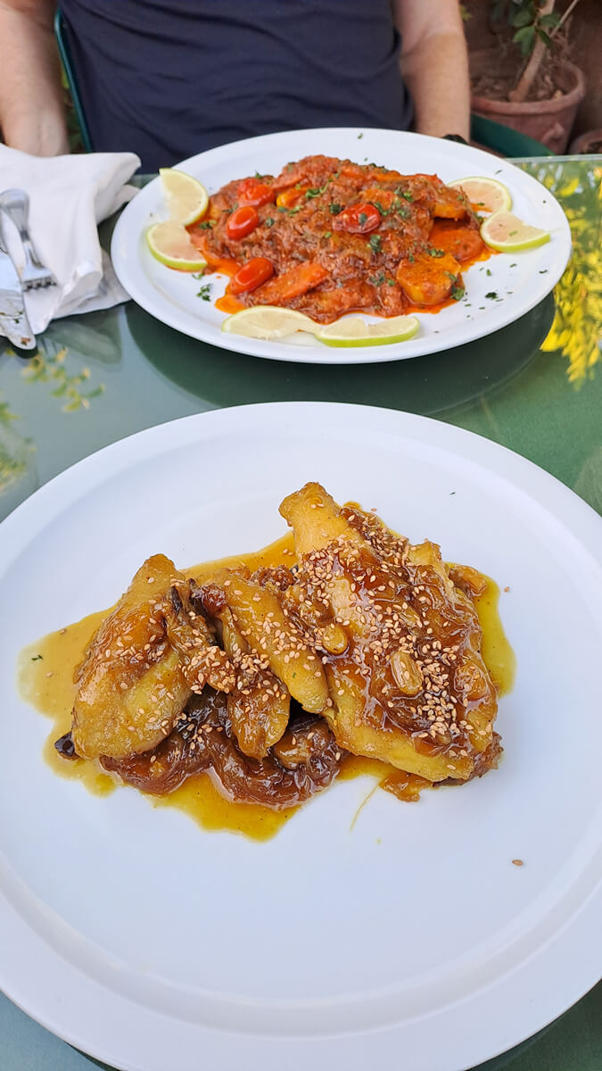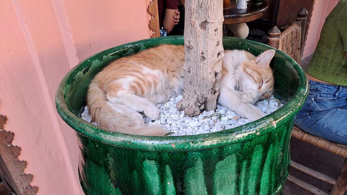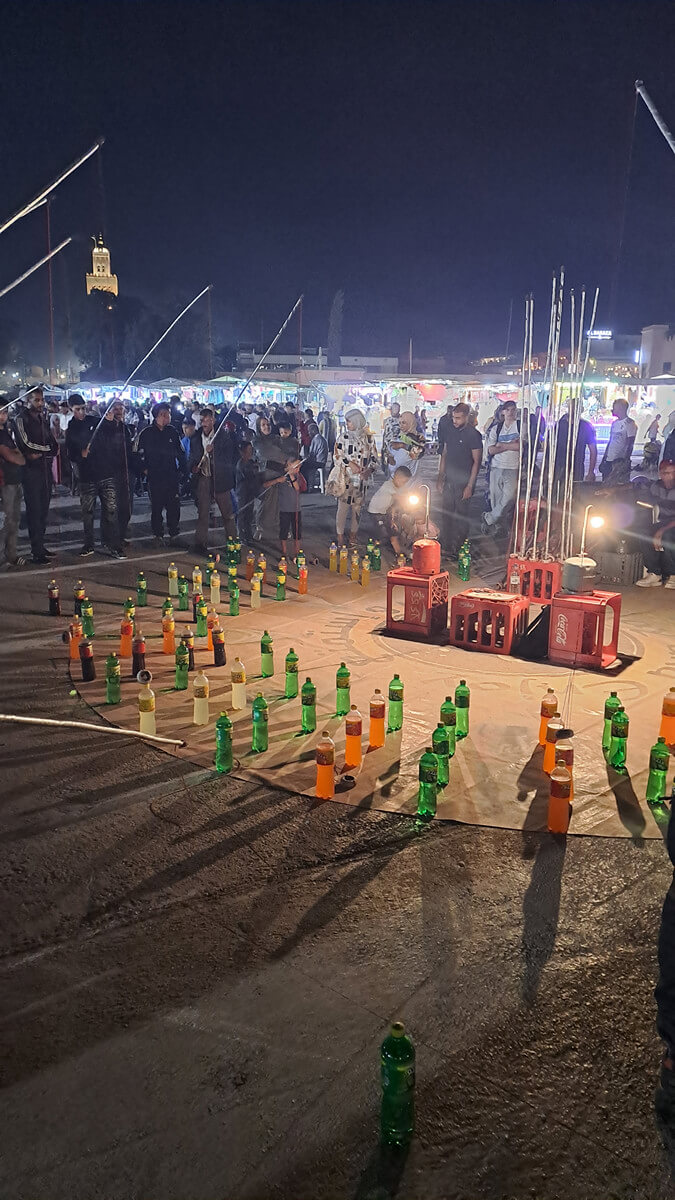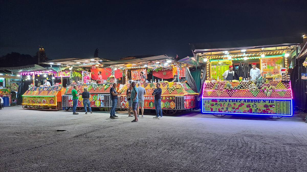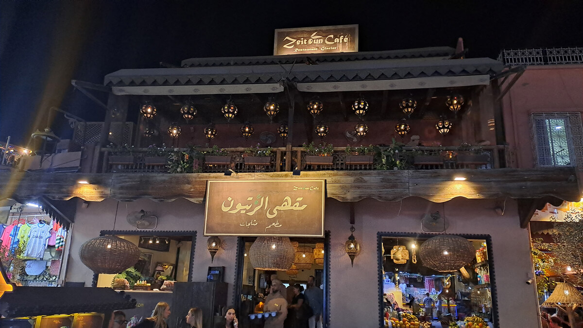 Tipp: Rund um den El Fna gibt es etliche Restaurants mit Dachterrasse und schönem Blick über den Platz. Cafe de France war OK, würde aber nicht unbedingt wieder hingehen – und das nicht nur, weil ich fast von einem Sonnenschirm erschlagen wurde 😉