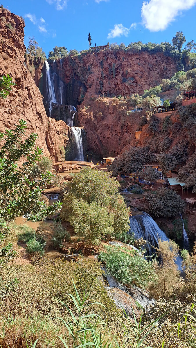 TAG 1 - ANREISE & ERSTE EINDRÜCKE VON MARRAKESCH Überraschenderweise war es diesmal günstiger ab München (statt ab Frankfurt) zu fliegen und auch die Flugzeiten waren besser. Per Uber ging es also um 6 Uhr morgens von mir zu Markus und dann zum Flughafen. Abgehoben Richtung Marrakesch sind wir ca. 45 Min. später als geplant (also gegen 9:45 Uhr), aber egal: Wir waren ja nicht auf der Flucht, sondern auf dem Weg in den Urlaub ;o). Der Rest von Tag 1 sah dann wie folgt aus: → #1: Check-In in unserem Riad (https://palaciodelasespecias.com), wo uns auf der schön gestalteten Dachterrasse erstmal Minztee und Kekse serviert wurden und uns ein Angestellter des Riads anhand eines Stadtplans ein paar Empfehlungen in Sachen Sehenswürdigkeiten und Restaurants gab. → #2: Frühes, sehr leckeres Abendessen im nahe des Riads gelegenen Taj Medina. → #3: Schlendern über den Djemaa el Fna (zentraler Marktplatz und Touristenmagnet) und Bestaunen des abendlichen Treiben dort. → #4: Leckere Mocktails trinken im Zeitoun Café. → #5: Den Abend auf der Dachterrasse unseres Riads gemütlich ausklingen lassen. TAG 2 - MARRAKESCH → #1: Großartiges und umfangreiches Frühstück (individuell, kein Buffet!) in unserem Riad → #2: Free Walking Tour (mit Guide Ismael): Knappe 3 Stunden durch die Altstadt (Medina), in der man sich ohne Guide zwangsläufig verläuft. → #3: Mittagessen (Tajine) im Cafe de France am El Fna. → #4: Besuch des Bahia Palasts. → #5: Besuch der jüdischen Synagoge und des jüdischen Friedhofs [siehe auch hier] → #6: Abendessen in der Kosybar und dann den Abend auf der Dachterrasse unseres Riads gemütlich ausklingen lassen. Mein Highlight des Tages: Schwer zu sagen. Wir sind zwar an diesem Tag echt viel gelatscht (knapp 20 km), aber ich bereuhe nichts und würde alles (#2, #4, #5) empfehlen. TAG 3 - ESSAOUIRA Heute ging es (per GetYourGuide) ins gut 180 km westlich von Marrakesch gelegene Essaouira. Am Atlantik gelegen, gilt Essaouira als (Kite-)Surfer-Hotspot. Neben den Stränden/Surfern, sollte man sich aber auch die historische Medina (UNESCO-Weltkulturerbe), die Stadtmauern (City Walls) und die Festungsanlage (Skala du Port) nicht entgehen lassen. Für alle, die keine Angst vor Seemöwen haben, ist auch der Hafen definitiv einen Besuch wert – v.a. wenn die Fischer dort (nachmittags) ihre frischen Fänge verkaufen (und es dort vor Seemöwen nur so wimmelt). Zurück in Marrakesch haben wir abends im kleinen, aber feinen und immer gut besuchtem Nakoul Mzian (zwischen unserem Riad und El Fna) sehr lecker gegessen und dann den Abend – wie so oft – gemütlich auf der Dachterrasse unseres Riads ausklingen lassen. Kurz und knapp: Ein Tagesausflug nach Essaouira lohnt sich! TAG 4 - OUZOUD Auch an Tag 4 hatten wir einen Tagesausflug (per GetYourGuide) gebucht. Heute ging es zu den Ouzoud Wasserfällen. Nach ca. 3 Stunden Fahrt waren wir endlich vor Ort und die geführte Tour konnte beginnen. Leider haben Markus und ich dann gleich zu Beginn unsere Gruppe und den Guide Yussef verloren. Wir irrten also erstmal ein wenig alleine rum, entschlossen uns dann aber doch telefonisch mit GetYourGuide Kontakt aufzunehmen. Schließlich meldete sich ein anderer Yussef bei uns und wir schlossen uns seiner Gruppe an. Im Urzeigersinn ging es erstmal, an etlichen kleinen Läden vorbei, und über zich Stufen hinunter zum Fuße der wirklich schönen Wasserfälle (die nebenbei zu den höchsten Afrikas gehören). Dort gab es dann (im einzigen Restaurant da unten) Mittagessen – mit tollem Blick auf die Wasserfälle. Danach wurden wir mit einem Ruderboot direkt an die Wasserfälle gefahren – ein bissl wie der Klassiker an den Niagarafällen, nur viel kleiner ;o) Letzter Teil des Trips war dann der ehrlich gesagt doch ziemlich beschwerliche Aufstieg auf der anderen Seite der Wasserfälle. Yussef (#2) hat das aber super gemacht und immer wieder kurze Pausen eingelegt. Als wir fast oben waren, gab es dann noch einen recht ausgieben Stopp in einem Berberdorf, wo uns mal wieder gezeigt wurde, wie man Arganöl herstellt und wir leckeren Minztee serviert bekommen haben. Zurück in Marrakesch waren wir – auch Dank Stau – erst relativ spät, so dass wir uns in Sachen Abendessen für ein Restaurant in der Nähe entschieden haben und im Nessma gelandet sind. Kurz und knapp: Auch wenn ich etwas angesäuert war, weil Yussef (#1) es nicht geschafft hat seine Truppe zusammenzuhalten – man hätte ja am Anfang zumindest mal durchzählen können! -, würde ich diesen Tagestripp zu 100% empfehlen. TAG 5 - MARRAKESCH Heute hatten wir uns weniger vorgenommen und blieben in Marrakesch. Also hieß es erstmal ausschlafen und gemütlich und ausgiebig im Riad frühstücken. Für 13:30 Uhr hatten wir Tickets für den Jardin Majorelle gebucht. Dass wir das schon Tage im Voraus getan hatten war gut. Der Andrang dort ist – trotz des stolzen Eintrittspreises von über 30€ für Garten und Yves Saint Lorent Museum – Wahnsinn. Obwohl wir ja schon Tickets hatten betraten wir den Garten erst so gegen 14 Uhr. 3 Stunden später waren wir dann durch Garten und Museum durch und schlenderten weiter Richtung Neustadt (Gueliz). Von dort ging es über den imposanten Boulevard Mohamed V (die Hauptstraße, die Alt- und Neustadt verbindet) zurück in die Medina. Eigentlich wollten wir auch noch einen Abstecher in den Cyberpark machen, aber dafür waren wir leider zu spät dran. Also beschlossen wir uns wieder mal eine nette Dachterasse fürs Abendessen zu suchen und landeten diesmal im Manzah (direkt bei der und mit tollem Blick auf die Koutoubia-Moschee). TAG 6 - ATLAS FILM-STUDIOS & AIT-BEN-HADDOU Heute hieß es mal wieder früh raus aus den Betten. Unsere Abfahrt Richtung Atlas Gebirge und den Atlas Filmstudios in Ouarzazate sowie Ait-Ben-Haddou wurde von GetYourGuide für 7:20 Uhr terminiert 🙁 → #1: Nach zich Serpentinen legten wir einen wohltuenden (wenn auch unspektakulärer) Fotostopp mit Blick auf ein Berbe