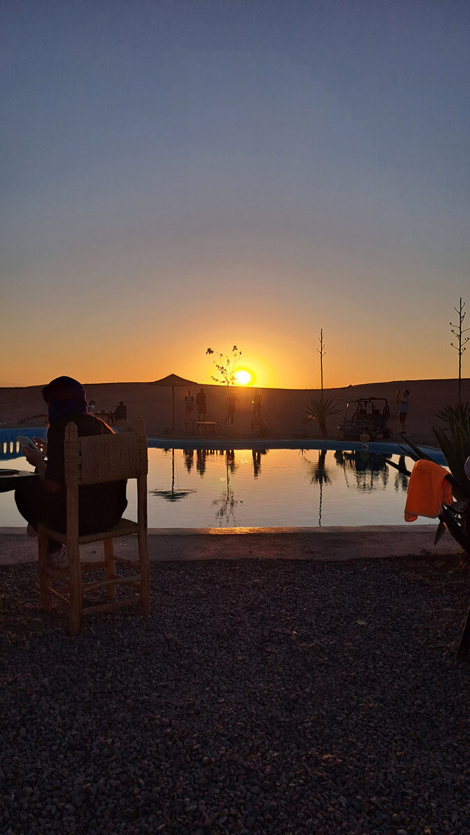 Nebenbei: Da wir ziemlich früh los mussten und nicht im Riad Frühstücken konnten, bekamen wir “Lunch Pakete” (Obst, Kuchen, Fruchtjo, etc.).