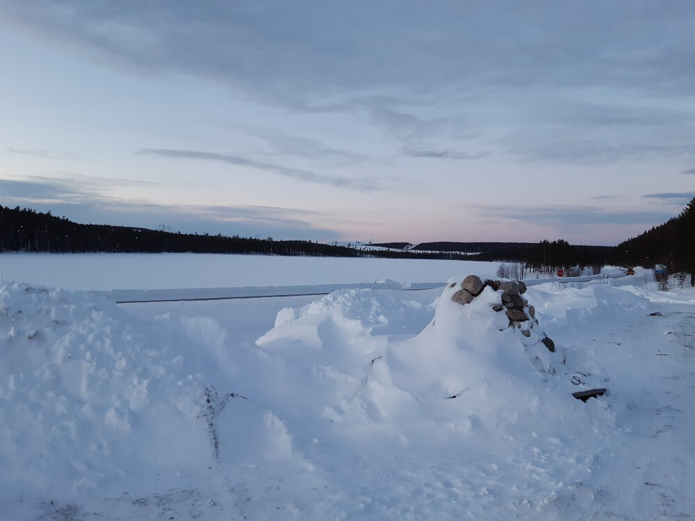 → 11:00 Uhr: Zeit totschlagen in Arvidsjaur: Wie wir gelernt haben, ist Arvidsjaur ein “Go-To-Place” für die Automobilindustrie, um dort mit neuen Autos über die zugefroreren Seen zu flitzen. Viel zu bieten hat der Ort darüberhinaus aber ehrlich gesagt nicht. Dank des Samidorfs, der Kirche plus Friedhof, dem Cafe “Hans pa Hörnet“, dem See “Västra Ringlet” und den Supermärkten Coop und ICA haben wir die Zeit aber dann doch irgendwie rum bekommen.