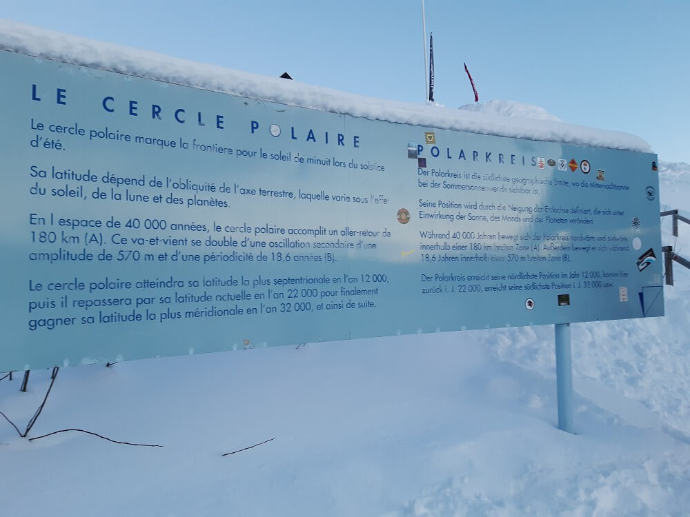 → 16:30 Uhr: Kurzer Fotostopp am Polarkreis, wo Peter (unser Busfahrer) uns “Wolfskrallen”, einen kalten Früchtepunsch mit oder ohne Alkohol, serviert hat.