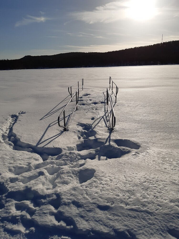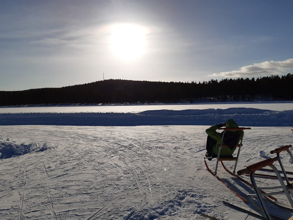 → Zurück ins Hotel und hoffen auf Polarlichter: Marc meinte die Chancen wären diese Nacht nicht schlecht, Polarlichter zu sehen. Man bräuchte aber Geduld – evtl. bis 4 Uhr morgens – und natürlich auch Glück. Wir trafen uns also ab 22h stündlich am Ufer des See’s Talvatissjön (direkt hinter dem Hotel gelegen) und starrten in den Himmel. Wie sich herausstellte, haben Monika und ich richtigerweise entschieden, den letzten Versuch gegen Mitternacht zu starten … leider gab es in dieser Nacht nichts zu sehen.