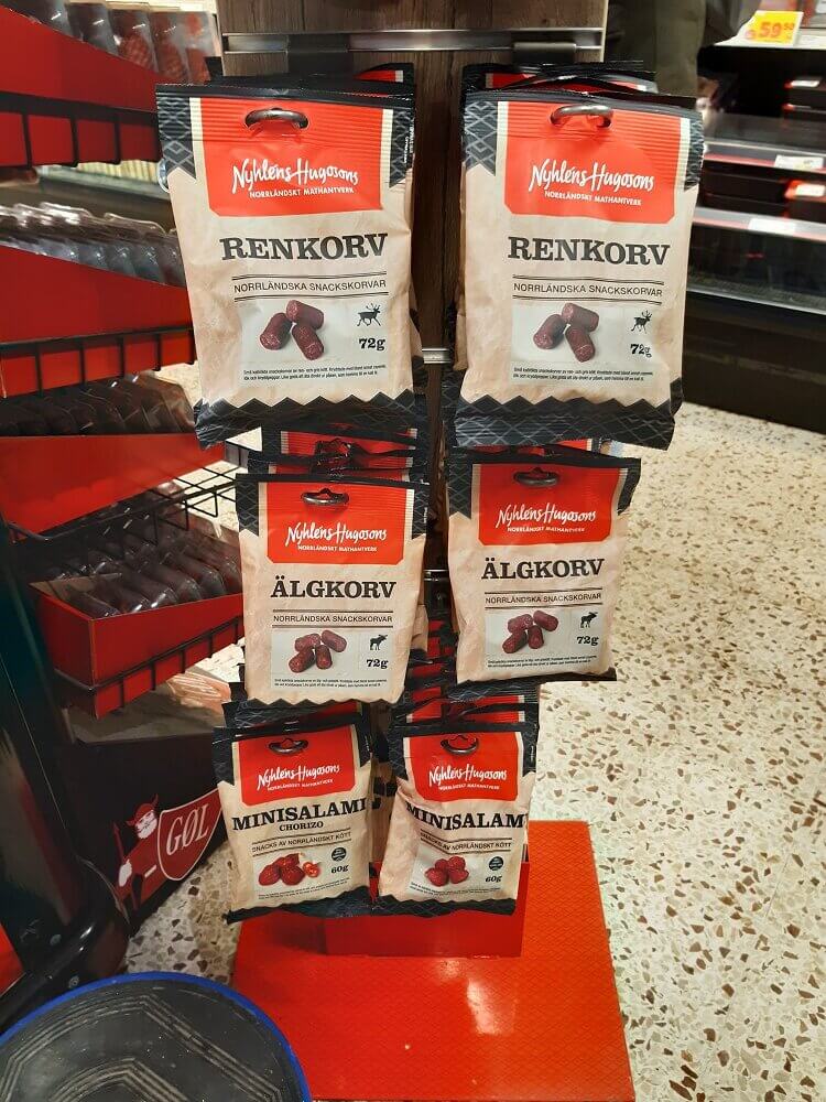 → 16:00 Uhr: Besuch einer samischen Boutique in Jokkmokk, die extra für unsere Gruppe aufgemacht hatte. Echt nett, es gab sogar Rentierfell Sitzkissen … ich habe mich allerdings auf ein kleines Gläschen Hjortron Marmelade beschränkt.
